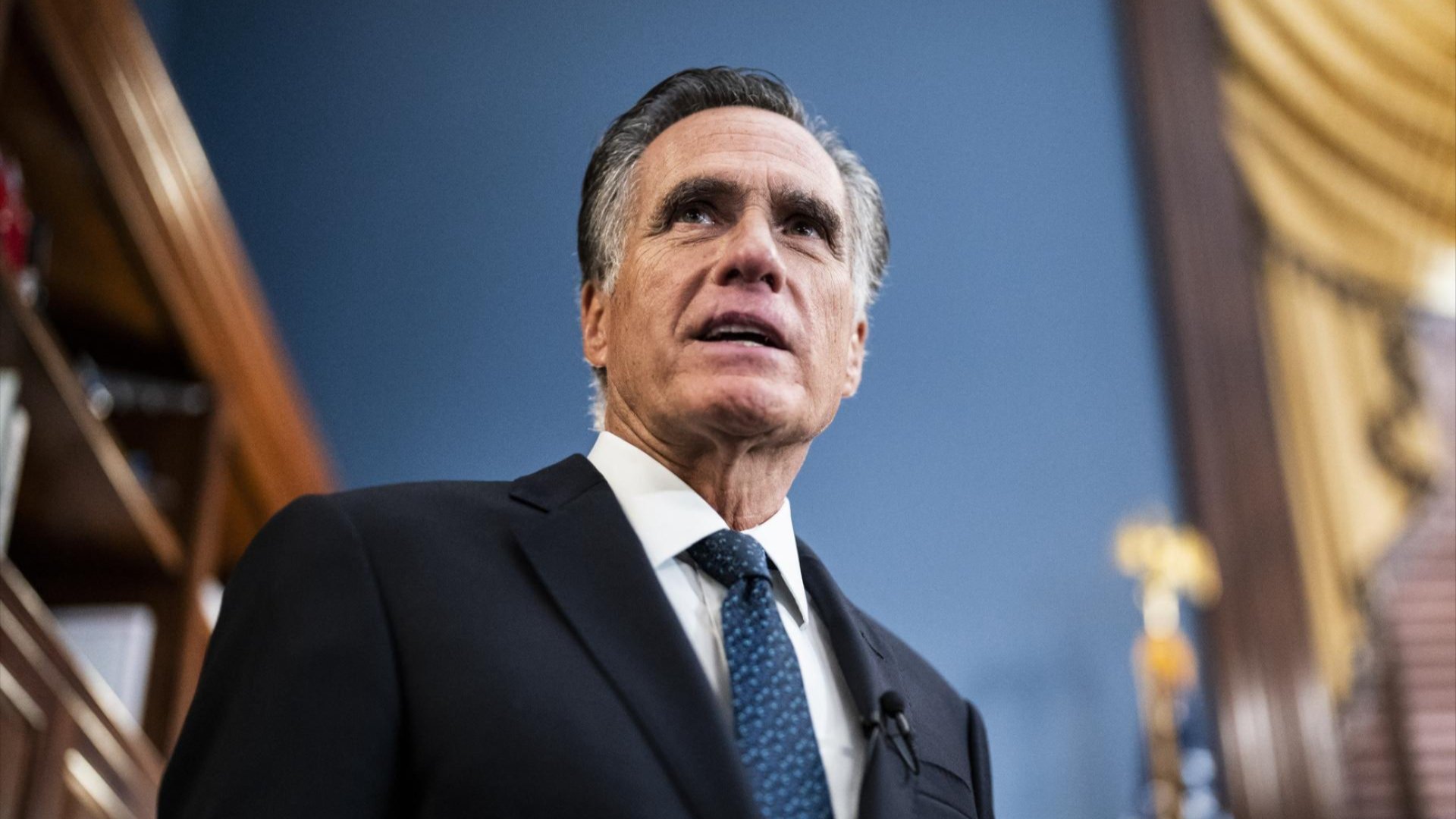 Sen. Mitt Romney (R-Utah) speaks with reporters after announcing that he will not seek reelection when his current term expires, in is office on Capitol Hill on Wednesday, Sept 13, 2023, in Washington, DC. (Jabin Botsford/The Washington Post via Getty Images) |